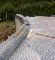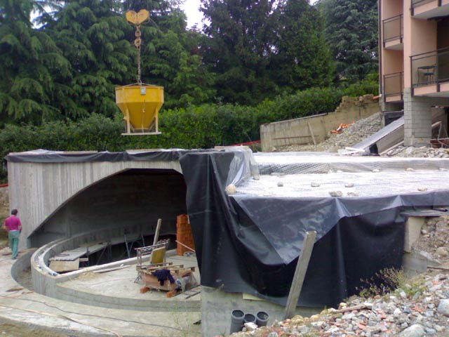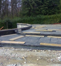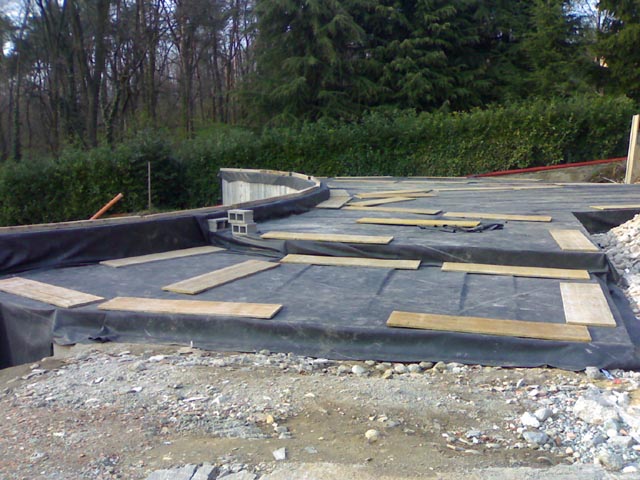 Esecuzione di impermeabilizzazione con un unico telo di EPDM FIRESTONE (dimensioni 15 m x 30 m)della soletta di copertura del locale piscina che successivamente sarà ricoperto con il terreno per fare un giardino pensile.