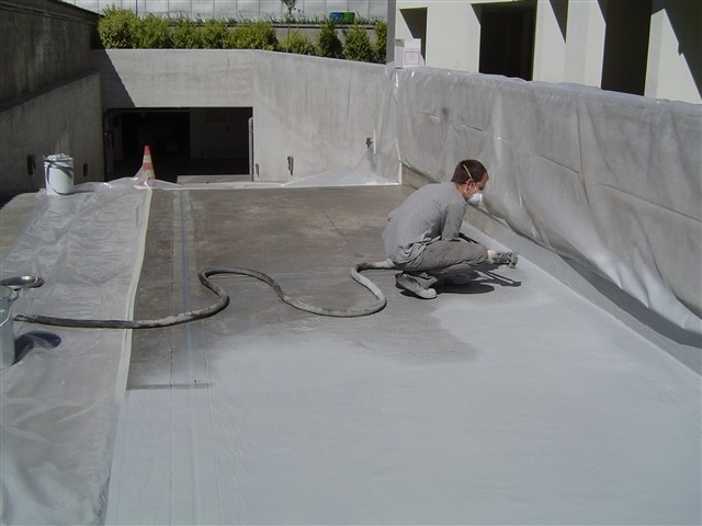 La poliurea è un bicomponente che viene spruzzato a caldo tramite un macchinario apposito costituito da una pompa riscaldante che pesca dai due contenitori i componenti e li convoglia in un tubo di uscita dove vengono mescolati e riscaldati a 70°C, appena la miscela viene spruzzata , tramite una pistola airless si solidifica nel giro di un paio di secondi.